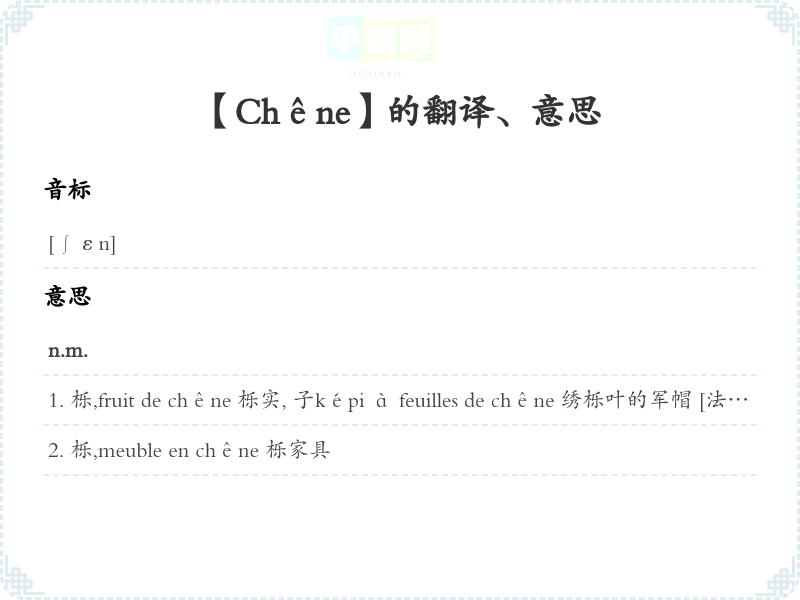 【Chêne】是什么意思、字义解释