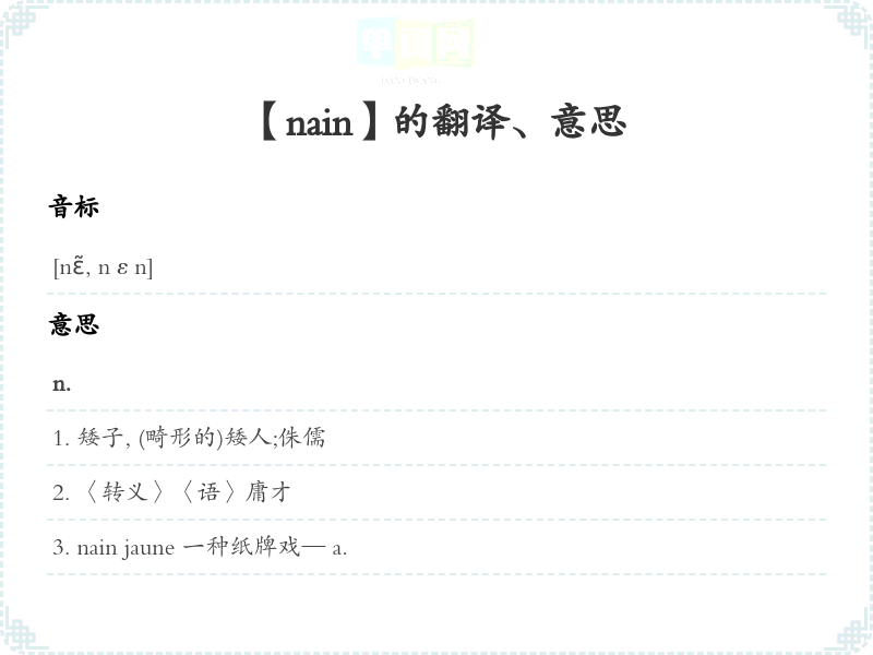 【nain】 联想:、 近义词:、 反义词: 联想词