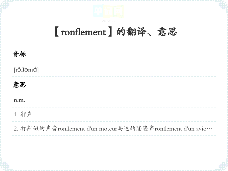 【ronflement】是什么意思、字义解释