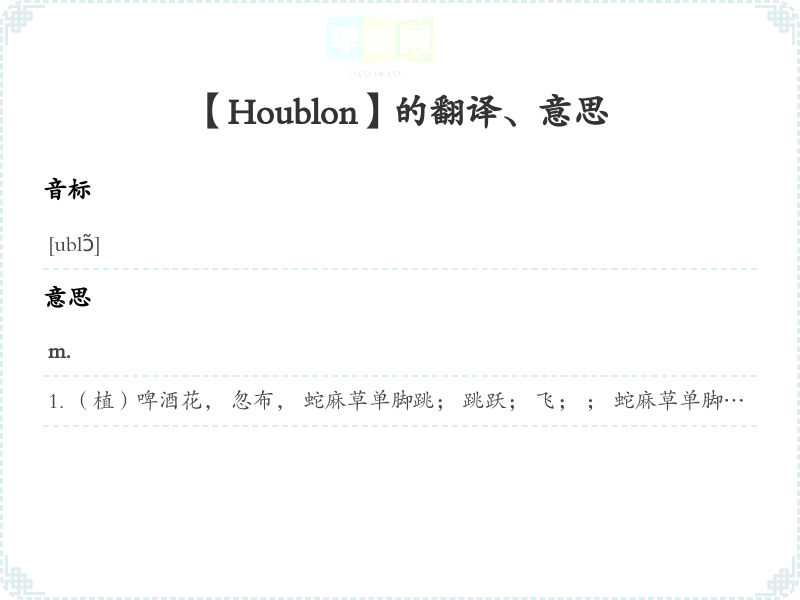 (植)啤酒花, 忽布, 蛇麻草单脚跳; 跳跃; 飞; ; 蛇麻草单脚跳; 跃过