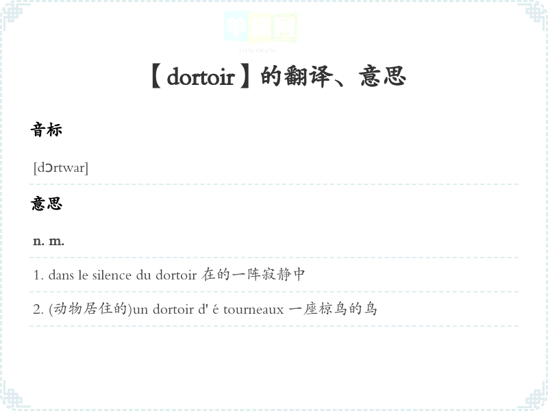 【dortoir】是什么意思、字义解释