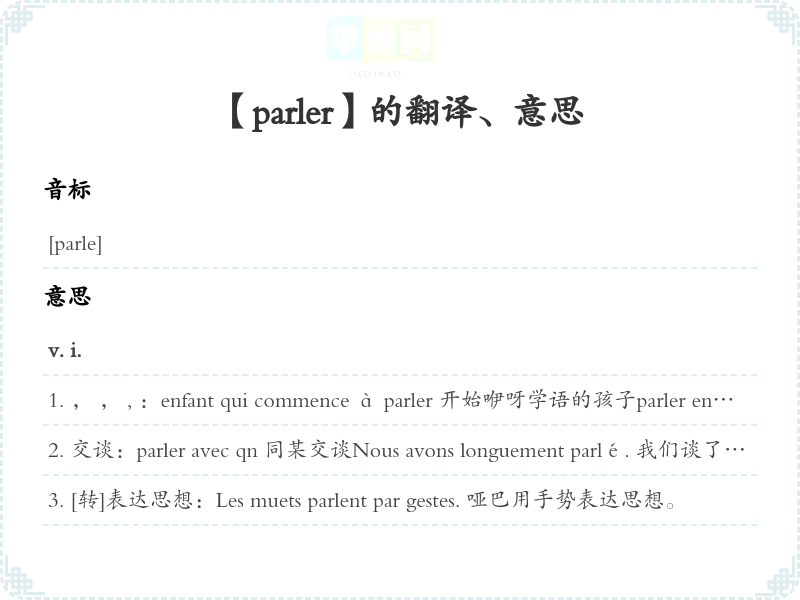 【parler】是什么意思、字义解释