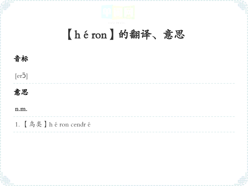 【héron】是什么意思、字义解释