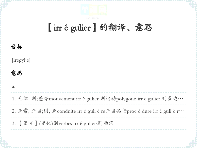 【irrégulier】是什么意思、字义解释