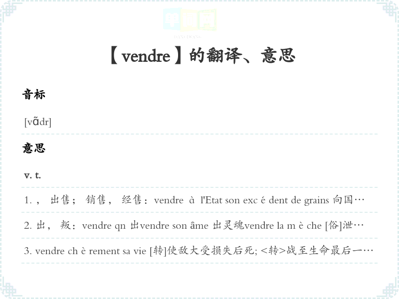 【vendre】是什么意思、字义解释