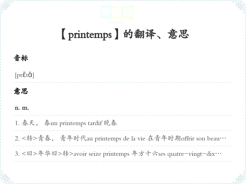 【printemps】是什么意思、字义解释