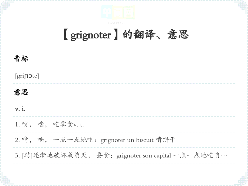 【grignoter】 联想:、 近义词:、 反义词: 联想词