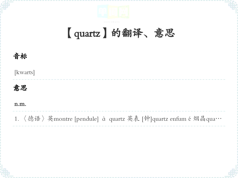 〈德语〉英montre [pendule] à quartz 英表 [钟]quartz enfumé烟晶quartz piézo-électrique压电英