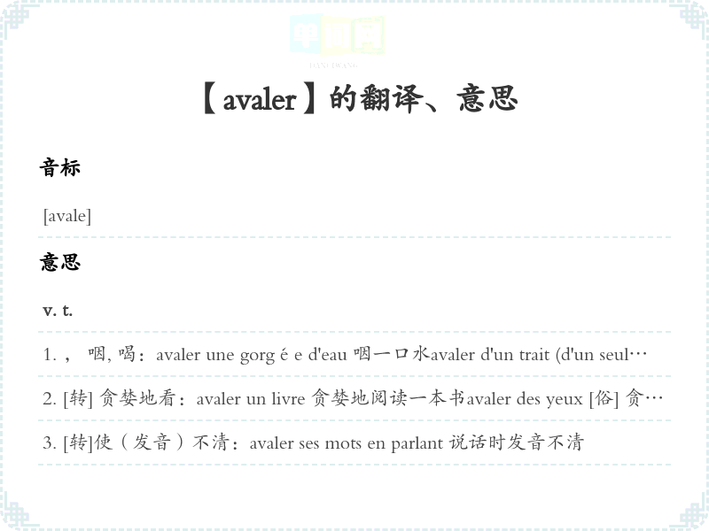 【avaler】 联想:、 名词变化:、 近义词:、 反义词: 联想词