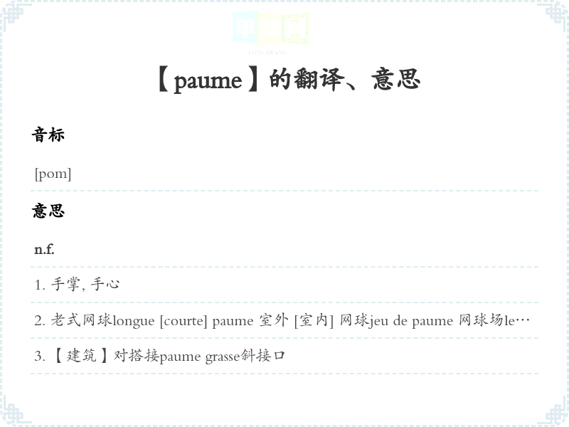 【paume】是什么意思、字义解释
