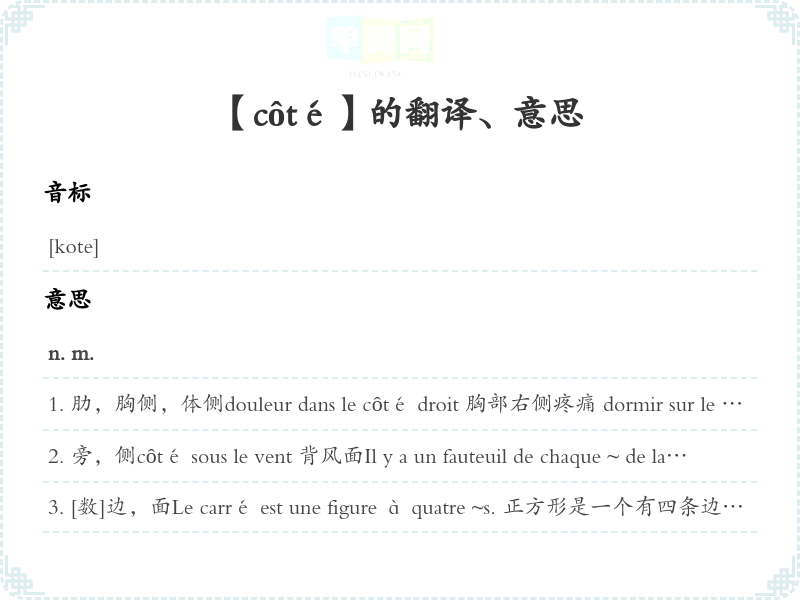 【côté】是什么意思、字义解释