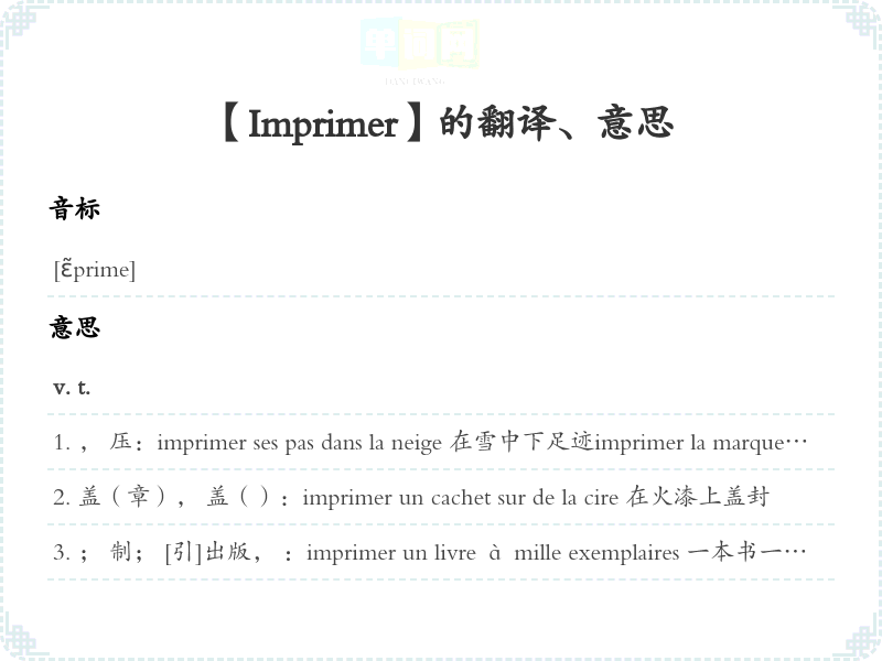 【Imprimer】是什么意思、字义解释