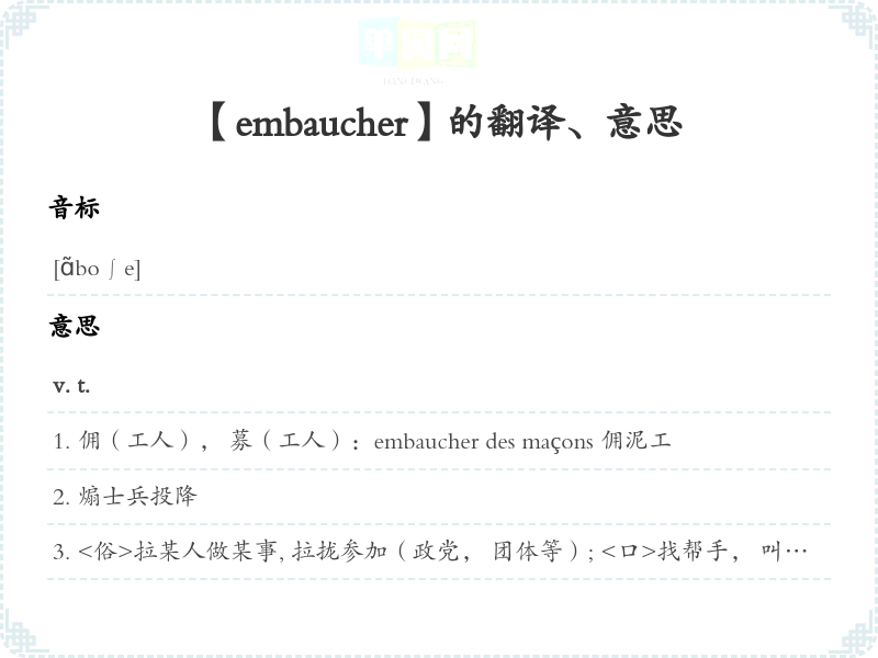 【embaucher】是什么意思、字义解释