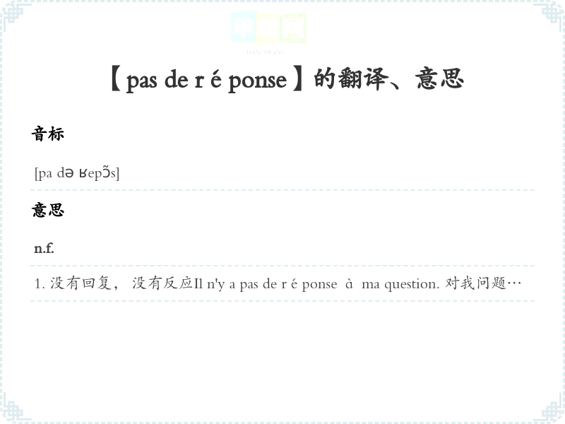 【pas de réponse】是什么意思、字义解释