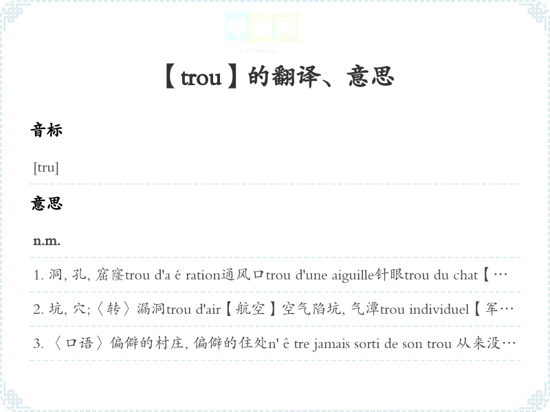 【trou】是什么意思、字义解释