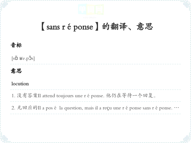 无回应的Il a posé la question, mais il a reçu une réponse sans réponse. 他提出了问题,但没有得到回应。