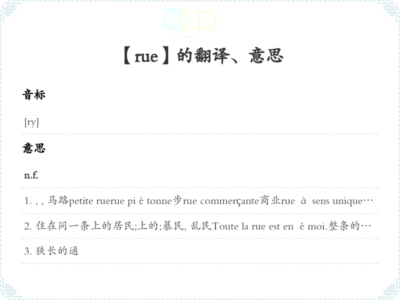 【rue】 联想、 近义词、 同音、近音词 联想词