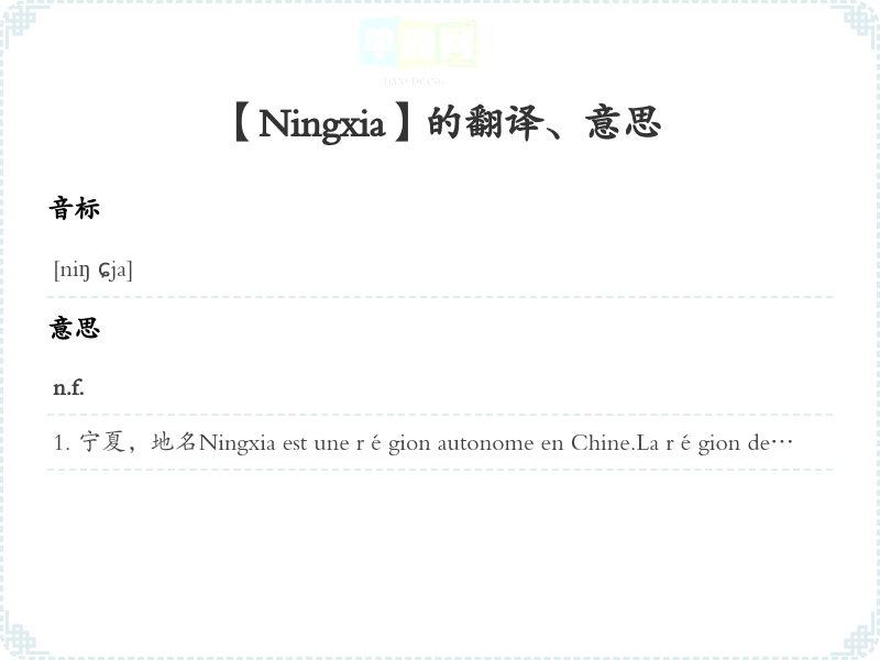 【Ningxia】是什么意思、字义解释