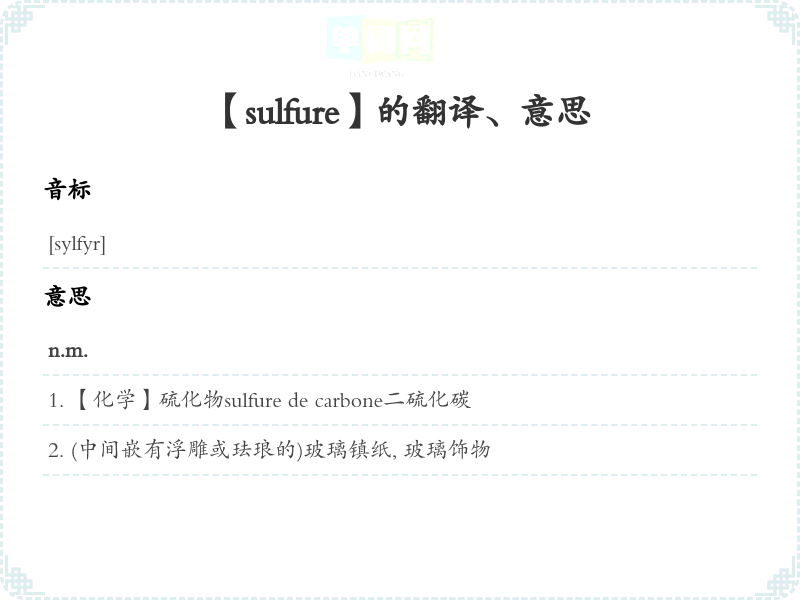 【sulfure】是什么意思、字义解释