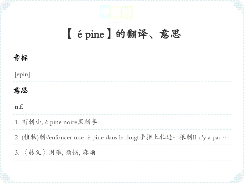 【épine】是什么意思、字义解释