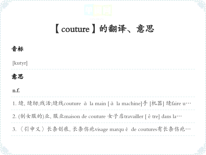 【couture】是什么意思、字义解释