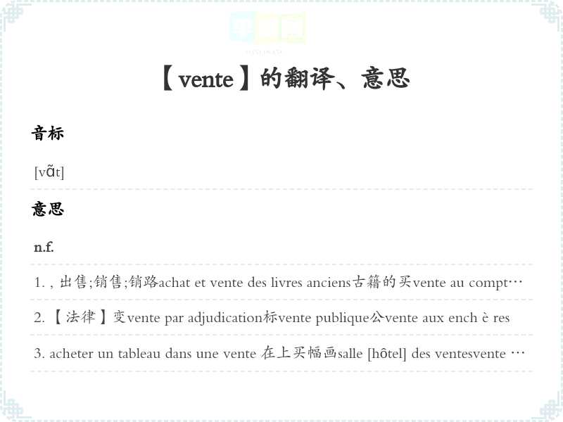【vente】是什么意思、字义解释