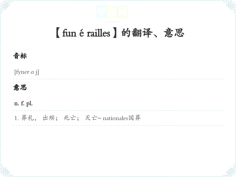 【funérailles】是什么意思、字义解释