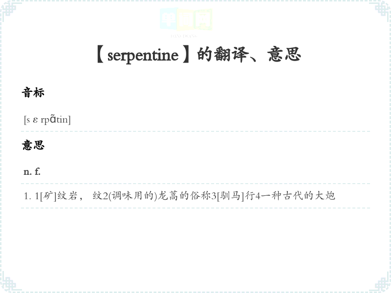 1[矿]纹岩, 纹2(调味用的)龙蒿的俗称3[驯马]行4一种古代的大炮