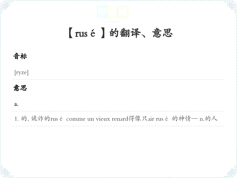 【rusé】 近义词:、 反义词: 联想词