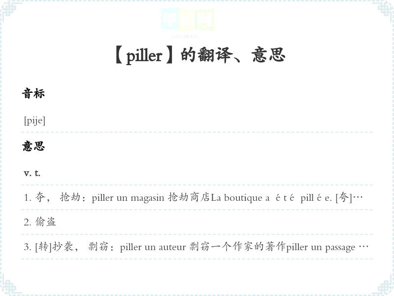 [转]抄袭, 剽窃:piller un auteur 剽窃一个作家的著作piller un passage 抄袭一段