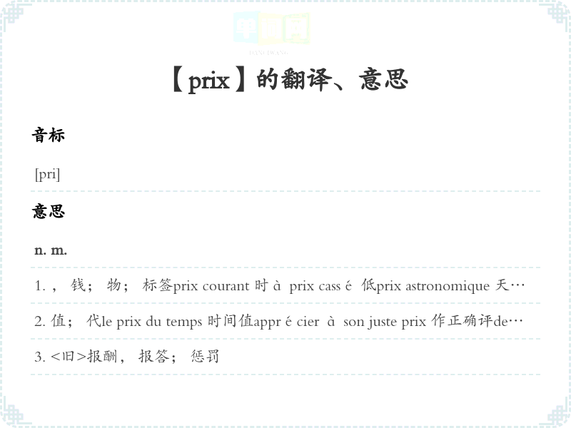 【prix】是什么意思、字义解释
