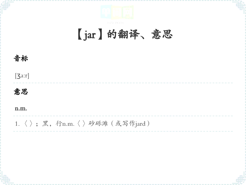 〈〉;黑,行n.m.〈〉砂砾滩(或写作jard)