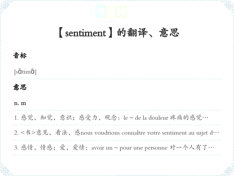 【sentiment】是什么意思、字义解释