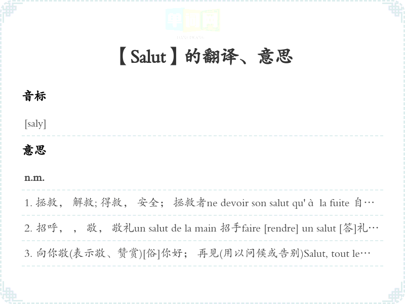 【Salut】是什么意思、字义解释