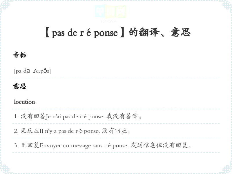 【pas de réponse】是什么意思、字义解释