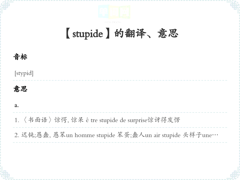 【stupide】 联想:、 近义词:、 反义词: 联想词