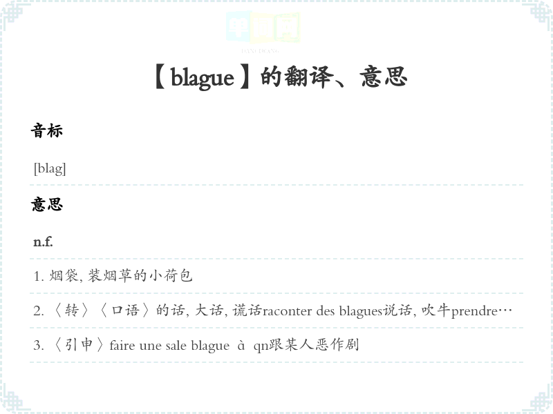 【blague】是什么意思、字义解释