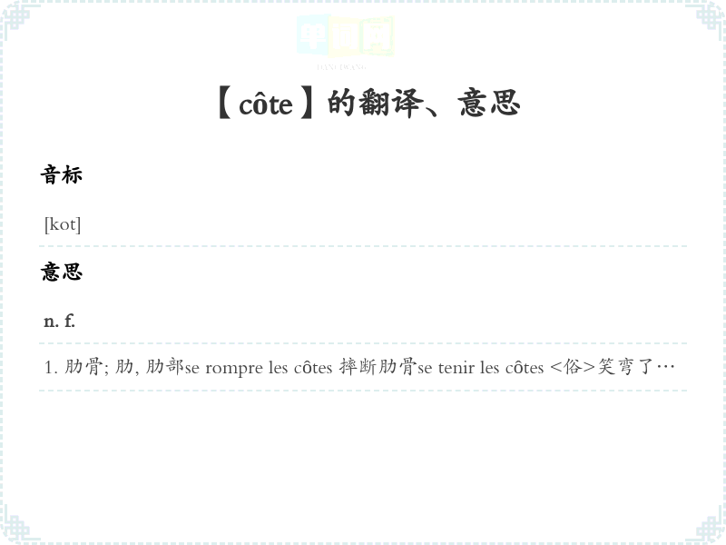 【côte】是什么意思、字义解释