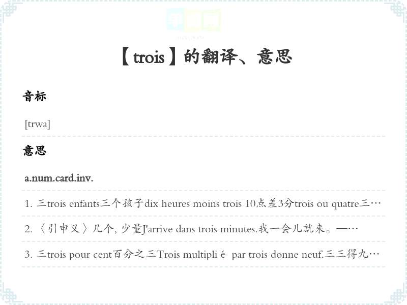 【trois】是什么意思、字义解释
