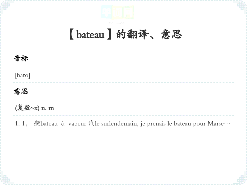 【bateau】是什么意思、字义解释