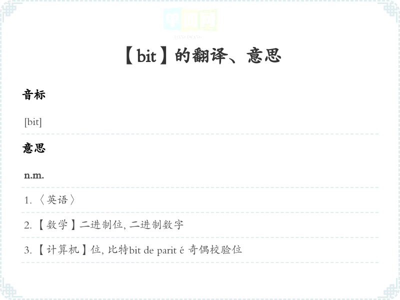 【bit】是什么意思、字义解释