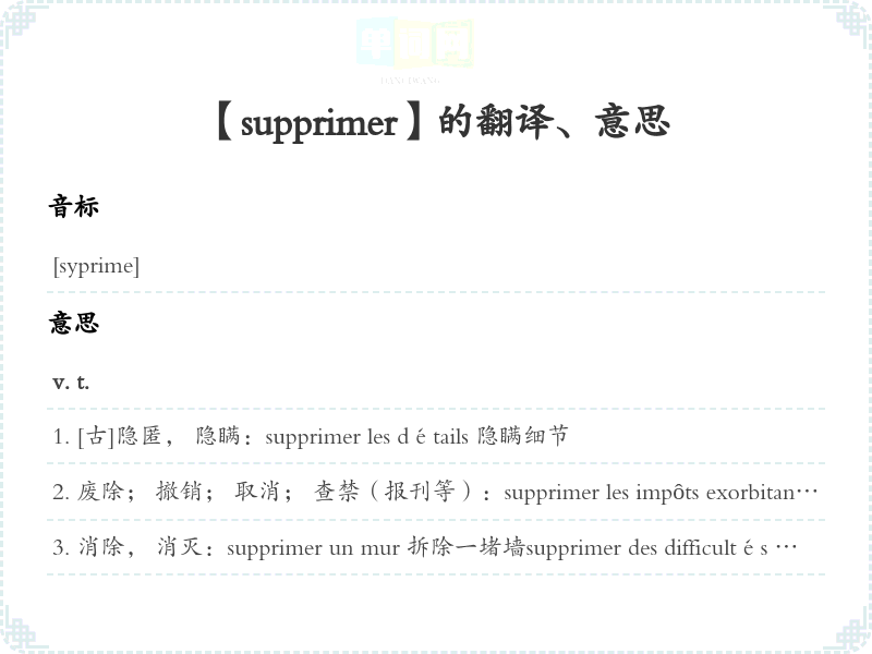 【supprimer】是什么意思、字义解释