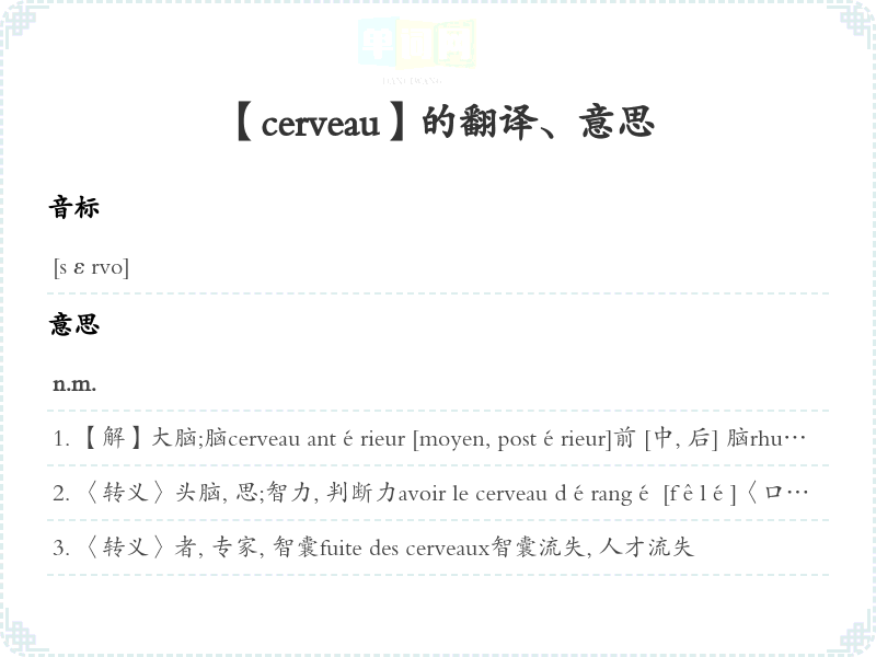 【cerveau】 联:、 近义词:、 反义词: 联词