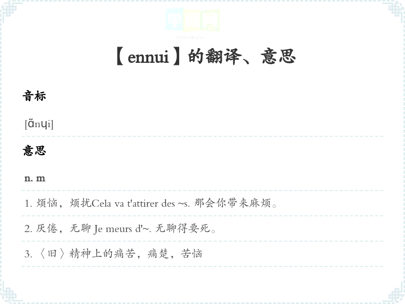 【ennui】是什么意思、字义解释