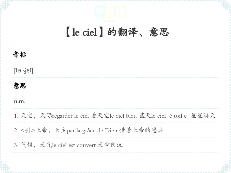 【le ciel】是什么意思、字义解释