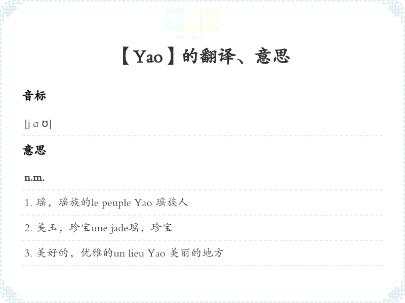【Yao】 助记:、 词根:、 联想、 名词化:、 词化:、 形容词化:、 近义词、 反义词、 同音、近音词 联想词