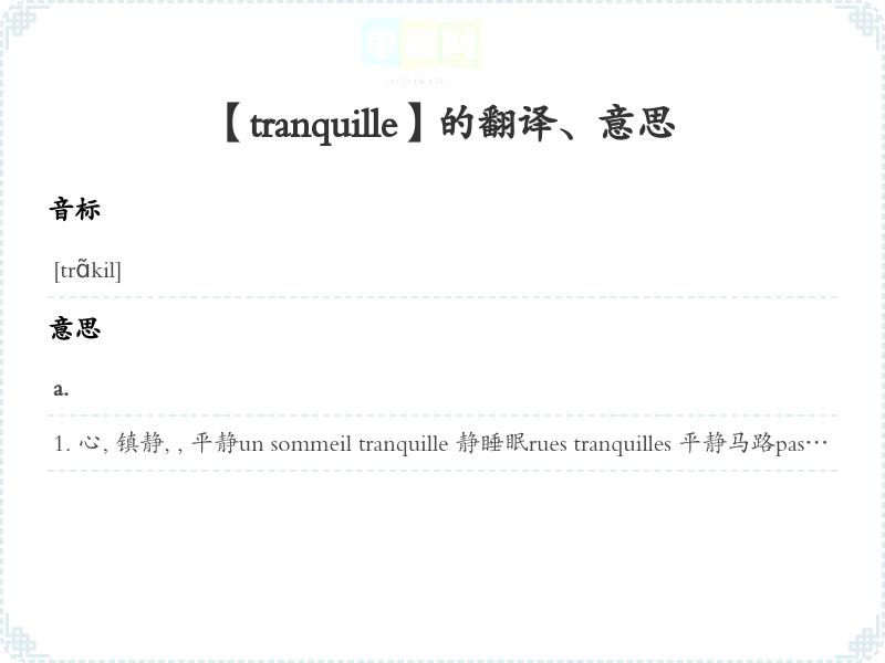 【tranquille】是什么意思、字义解释