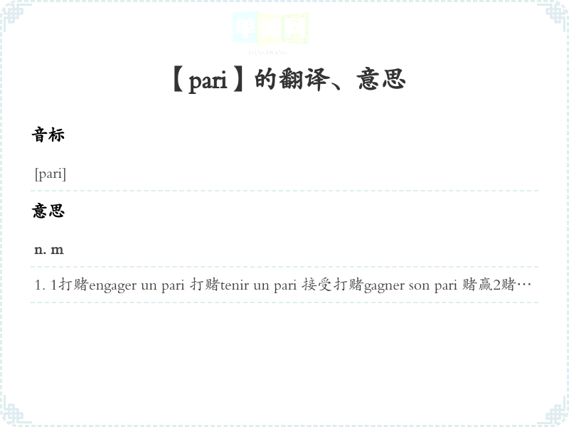 【pari】是什么意思、字义解释