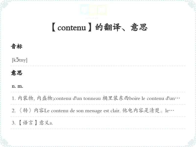 【contenu】是什么意思、字义解释