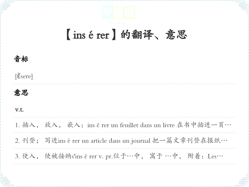 【insérer】是什么意思、字义解释